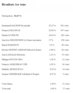 Présidentielle – Lamastre: résultats 1er tour avant annulation 24 avril 2017 RAD Démocratie Locale 0 Vous aimerez peut-être aussi :Réunion communauté de communes le 16 avril 2018Démocratie LocaleRCL - saison finie pour les séniorsSportNuit du Polar - "écran village" - LamastreLoisirsDeuxième tour des élections municipales: le 28 juin 2020Politique nationaleCollecte Urgente - SALAM ArdècheImmigrationPartagez Facebook WhatsApp Telegram Email électionLamastreprésidentiellevotes