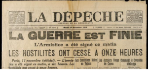 Le cessez le feu est effectif à 11 heures et entraine dans tout le pays des volées de cloches et des sonneries de clairons qui annoncent la fin d’une guerre qui a fait plus de 8 millions de morts,d’invalides et mutilés.