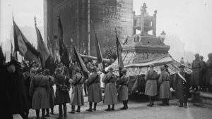 Date de commémoration symbolique, le 11 novembre ne marque pas la fin de la guerre puisque le conflit se poursuit en Europe de l’est et ne terminera véritablement que 8 mois plus tard avec le traité de Versailles.