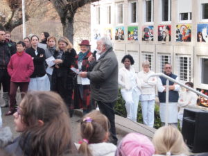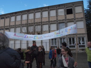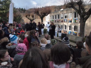 Ce furent donc près de 400 enfants qui se retrouvèrent, entourés de leurs enseignants, de nombreux parents d’élèves, du personnel de l’établissement, des délégués départementaux de l’Education Nationale (DDEN) et du vice-président de la Fédération des Oeuvres Laïques de l’Ardèche, Alain Jammet.