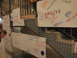 On pouvait aussi lire, sur des panneaux affichés dans le hall du collège ainsi que sur des banderoles tenues par des enfants, des réflexions pertinentes sur les valeurs de la laïcité.