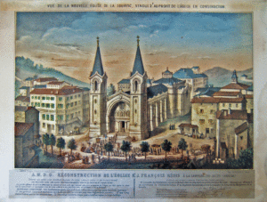 Durant la seconde moitié du XIXème siècle, des foules de plus en plus nombreuses arrivent en pèlerinage à Lalouvesc, si bien que l’église du village, pourtant reconstruite et agrandie après la mort du Saint, est devenue trop petite. La décision d’en construire une plus grande est prise.