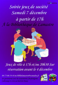 Samedi 7 décembre à partir de 17h, soirée jeux de société et jeu de rôle avec Cheylardgame et Callsnoup