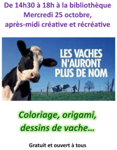 Dans le cadre du mois du film documentaire et avant la prochaine projection du film « Les vaches n’auront plus de nom », la bibliothèque de Lamastre propose une activité créative et récréative autour des vaches.