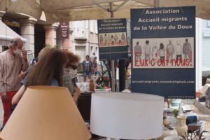 L’association « Accueil Migrants de la Vallée du Doux » a tenu un stand lors de la brocante de Lamastre ce 26 juillet 2020.