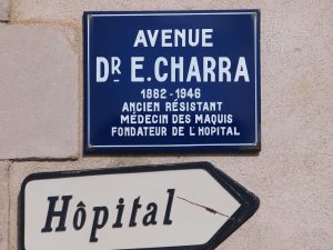 Les plaques indicatrices de l’avenue Elisée Charra mentionnent « médecin du maquis ». En effet, à partir de 1942, alors qu’il est médecin-chef à l’hôpital, il devient le médecin de la Résistance locale et l’hôpital accueillera les maquisards blessés.