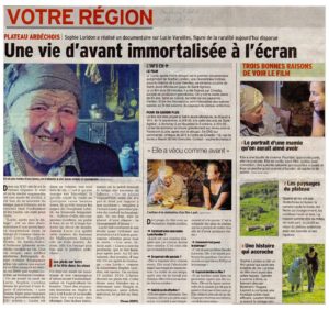 Les paroles de Lucie, intemporelles, résonnent au delà de l’Ardèche. Lucie nous touche, elle est comme les paysans des quatre coin du monde, les pieds sur terre et la tête dans les cieux ».