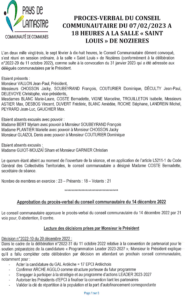 2 commentaires sur Communauté de communes – nouvelle réunion du conseil communautaire et procès verbal de la réunion de février 2023