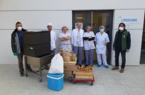 (3 avril 2020: remise des produits collectés devant la cuisine de l’hôpital de Lamastre)