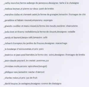 Les produits collectés ont été déposés au profit des Hôpitaux et EHPAD de Lamastre, Valence, Privas, Aubenas, Crest, Bourgs St Andéol et Die / Les Restos du Coeur d’Aubenas / le Secours Populaire de Touron sur Rhône.