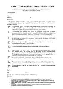 - L’attestation dérogatoire pour justifier de ses allers et venues hors de son domicile dans le cadre des « sorties autorisées ».