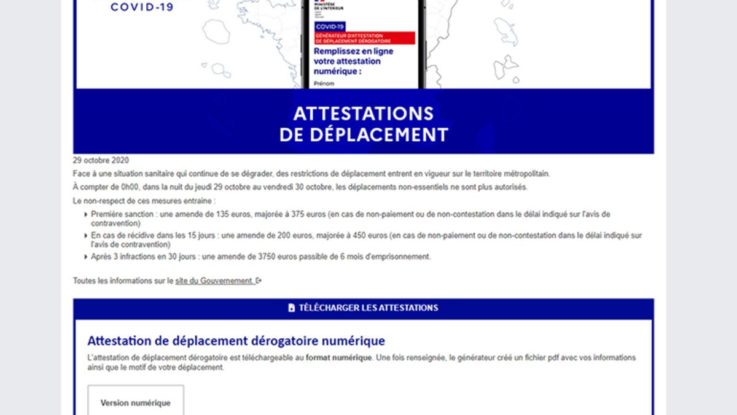 Comme lors du premier confinement du printemps 2020, le reconfinement de l’automne qui prend effet ce vendredi 30 octobre, impose l’usage d’attestations pour justifier des sorties du domicile. Il y en a même trois différentes !