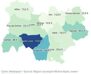 L’Ardèche est deux fois moins aidée que la Haute-Loire avec 56,9 euros par habitant.