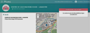 - en utilisant de préférence le site Maiia – centre de vaccination covid – Lamastre en vous souhaitant de ne pas tomber sur ce message récurent « pas de disponibilité en ligne« .