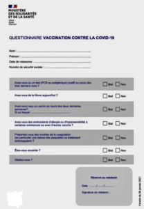 Un entretien avant injection avec un soignant donnera lieu à établissement d’un questionnaire de santé qui sera visé par le médecin présent.