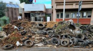 Insatisfaits de leur entrevue avec le préfet, ils ont déversé des pneus, déchets verts,  du fumier et des légumes pourris devant les locaux de la Direction départementale de la protection des populations, avenue de Romans à Valence.