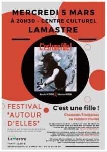 Festival « Autour d’Elles » 8ème édition du Mercredi 5 au Mardi 11 mars – centre Culturel de Lamastre.