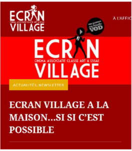 Avec le confinement, depuis plus d’un mois, les salles de cinéma sont fermées à Lamastre comme partout en France. Ecran Village propose une salle virtuelle pour vous faire patienter avant leurs réouvertures.