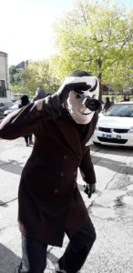 Beaucoup de masques « Anonymous » et même un déguisement en caméra de surveillance…