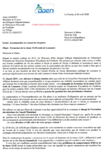 Alain JAMMET, Président de l’union des délégués départementaux de l’Éducation nationale de l’Ardèche interpelle le maire de Lamastre à propos de la fermeture de la classe ULIS.
