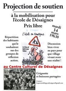 Il proposent ce mardi 14 mars la projection du film « l’école en campagne » en soutien à leur action.