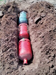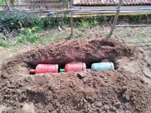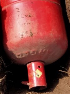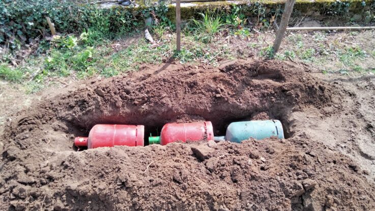 Mais rien de tout cela : notre jardinier vient de découvrir un gisement de gaz. Oui, vous avez bien lu : Un GISEMENT de GAZ ! Des bouteilles de butane, de propane en strates horizontales, en couches serrées, en veux-tu en voilà !