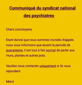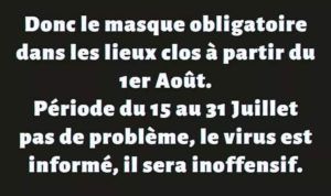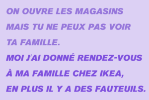 Petit florilège relevé sur les réseaux sociaux (fautes d’orthographe comprises) depuis le confinement de début 2020 jusqu’à aujourd’hui