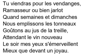 La macération des grappes entières doit être effectuée en quatre jours, ce qui procure au vin des arômes de fruits frais et une faible présence de tanin.