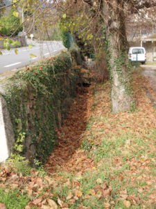 (Entrée de la cour des logements et l’ancienne béalière qui a aussi servi à l’irrigation agricole)