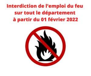 En raison des dérives constatées et le niveau de risque d’incendie de forêt en augmentation en raison de l’absence de précipitation significative et la présence d’un épisode venteux, le préfet de l’Ardèche a décidé, par arrêté préfectoral, d’interdire l’emploi du feu sous toutes ses formes sur l’ensemble du département à compter du 01 février 2022 et ce jusqu’à nouvel ordre. La levée de cette interdiction fera l’objet d’une nouvelle décision préfectorale dès que la situation générale le permettra.