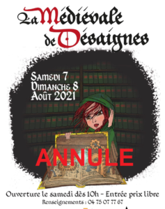 Cette année encore, en raison des contraintes sanitaires la Médiévale qui devait se dérouler les 7 et 8 août 2021 est annulée !