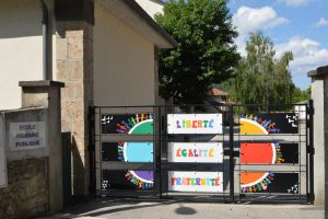 En juin 2016, le portail d’entrée de l’école primaire publique s’est trouvé embelli par la devise républicaine illustrée par l’imagination et le talent des écoliers des cours préparatoire, élémentaire et de l’ULIS (Unité Localisée pour l’Inclusion Scolaire).