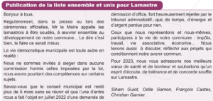 Inadmissible parce que de mémoire de Lamastrois, il n’a jamais été vu une équipe d’élus se servir d’un bulletin d’information public payé par tous les contribuables pour attaquer un conseiller municipal en particulier !