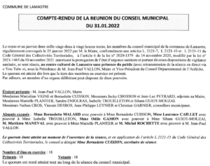 Compte rendu du conseil municipal du 31 janvier 2022