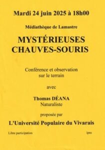 » Mystérieuses Chauves-Souris » animée par Thomas DÉANA, Naturaliste, le :