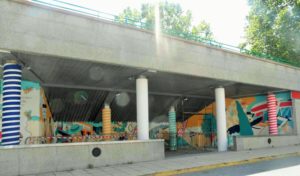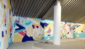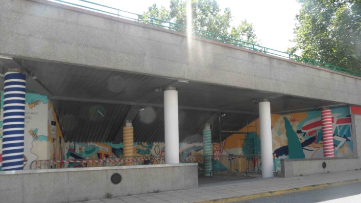 Nous sommes à la « mi-août », la fresque est presque terminée, les piliers intérieurs ont été repeints façon scoubidou.