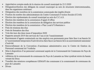 Réunion du conseil municipal le 29 juin 2020 à 20h30, au centre culturel