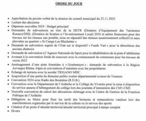 Réunion du conseil municipal le lundi 5 février 2024 à 20h30 en mairie