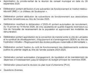 Réunion du conseil municipal en date du lundi 15 décembre 2025 à 20h30