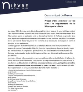 Laurent Ughetto, président du conseil départemental de l’Ardèche porte plainte après les propos d’Eric Zemmour sur CNews le 30 septembre 2020, qui a qualifié les mineurs étrangers isolés de « voleurs, assassins, et violeurs ».