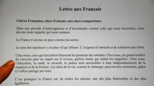 La lettre aux français du président Macron censée donner le cadre de ce « grand débat » et qui doit permettre d’établir «un nouveau contrat pour la nation», a été diffusée le 13 janvier.