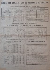 En attendant d’entendre à nouveau siffler le train dans la vallée du Doux, proposé par un lecteur, voici l’horaire des trains pour Lamastre en 1895