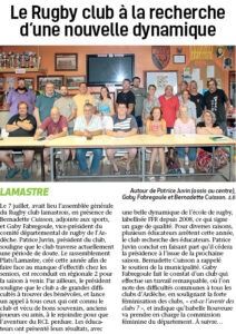 À la demande du président du Rugby Club de Lamastre, nous reproduisons ci-dessous l’article paru dans l’Hebdo de l’Ardèche du 13 juillet après l’assemblée générale du club.