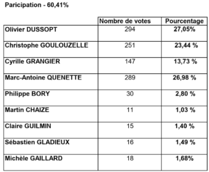 Le deuxième tour opposera donc Christophe Goulouzelle à Olivier Dussopt
