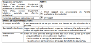 Le préfet de l’Ardèche a, par arrêté préfectoral du 25 août 2021, classé le bassin du Doux au niveau « ALERTE », en maintenant les bassins de l’Eyrieux et de l’Allier au niveau « ALERTE » et les bassins de l’Ouvèze, de la Beaume et de l’Ardèche au niveau « ALERTE RENFORCEE » et y impose les limitations des usages de l’eau.