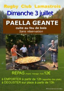 Paëlla géante du Rugby Club Lamastrois 25 mai 2022 RAD Sport 1 RUGBY CLUB LAMASTROISstade de la Sumène07270 LAMASTREtel : 04.75.06.59.54mail : r.c.lamastre@wanadoo.frhttp://rclamastrois.ffr.fr/ Vous aimerez peut-être aussi :Rugby: le prochain match de l'entente RC Plats - LamastreLe RCL en leaderL'Ardéchoise 2022: c'est reparti... mais sans son emblématique ex président fondateur !Randonner et faire du vélo à nouveau possible après le 11 maiRUGBY: Après-midi 100% fémininespaëllaRCL