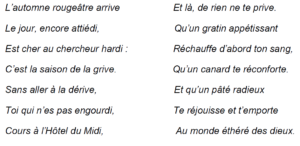 Le 1er janvier 1936 , il rédige sur le livre d’or du restaurant Barattero – hôtel du midi, ce poème: