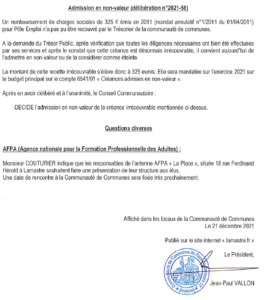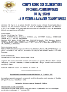 compte rendu des délibérations du 14/12/2021