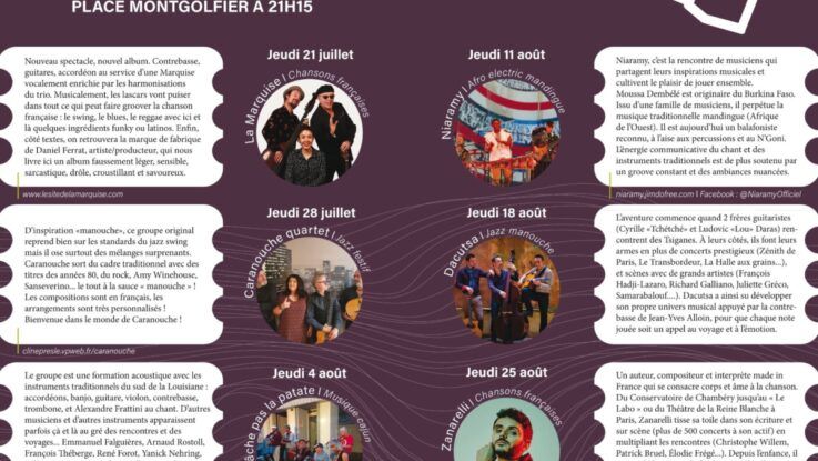 Concerts gratuits sur les gradins tous les jeudis du 21 juillet au 25 août