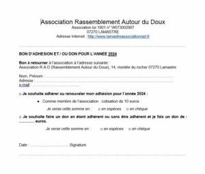 Nous vous invitons à adhérer ou à renouveler votre adhésion pour l’année 2024 en utilisant le bon ci-dessous.